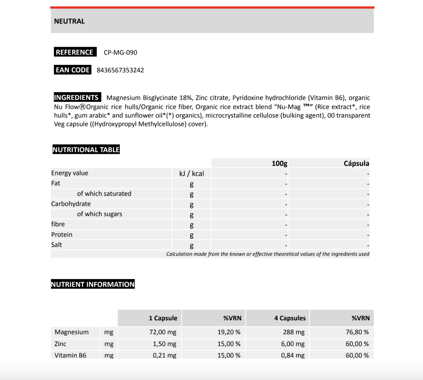 OSTRZEŻENIA: Suplementy diety nie powinny być stosowane jako substytuty zrównoważonej i zróżnicowanej diety. Zalecana dzienna dawka: 4 kapsułki. Nie przekraczaj maksymalnej zalecanej dziennej dawki. Przechowywać w miejscu niedostępnym dla młodszych dzieci.